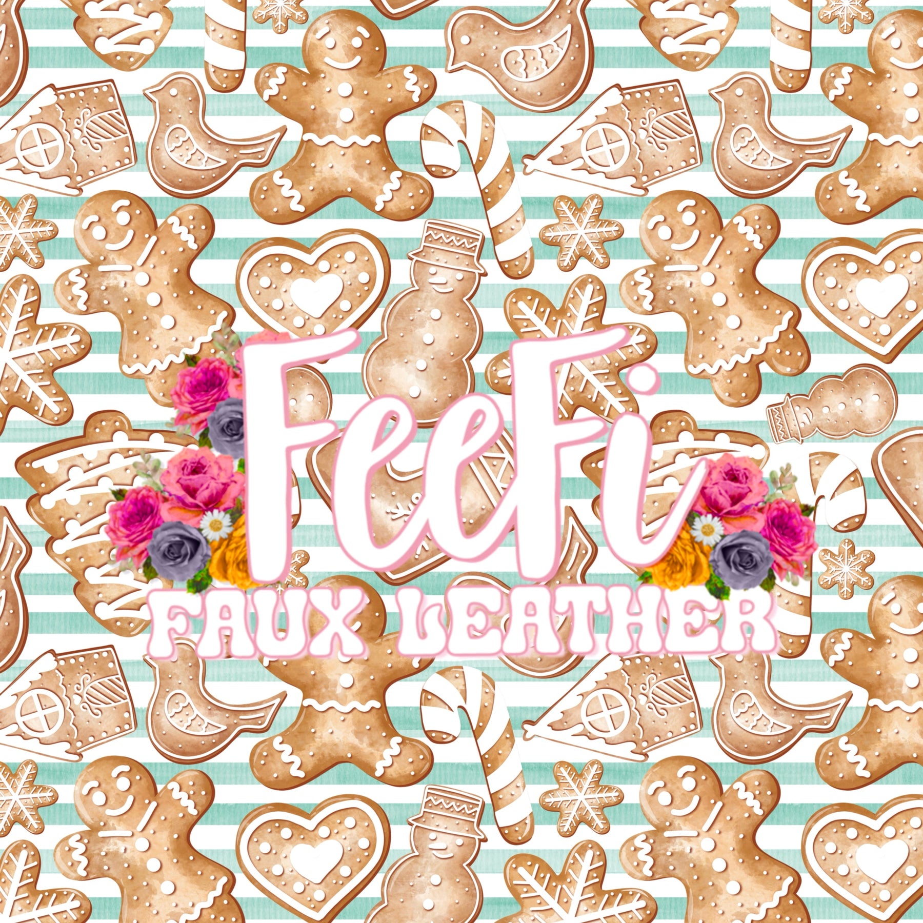 Gingerbread Christmas Printed Smooth Faux Leather Sheet
