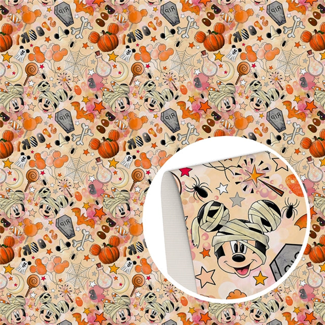 Mouse Fall Halloween Printed Smooth Faux Leather Sheet